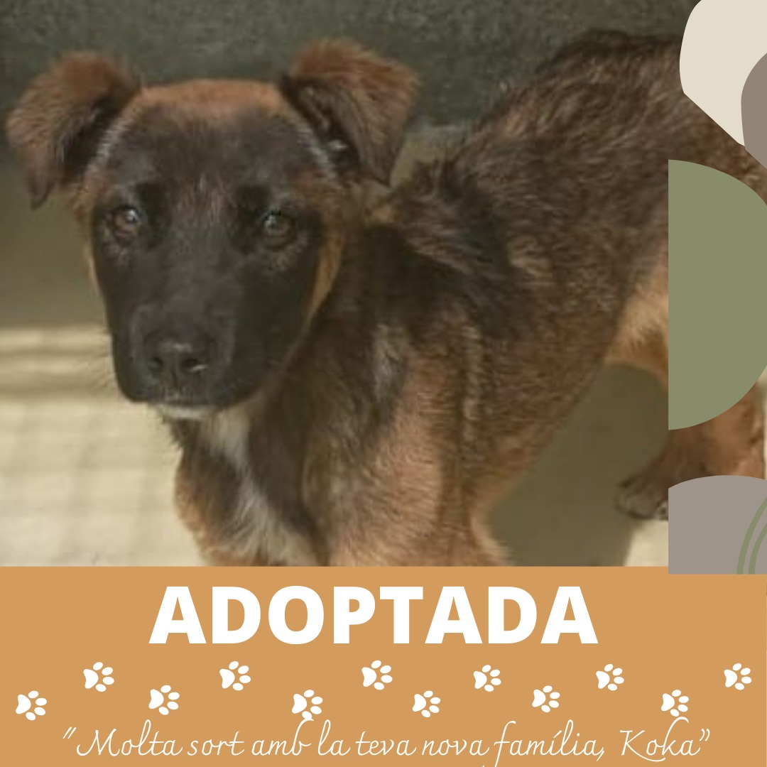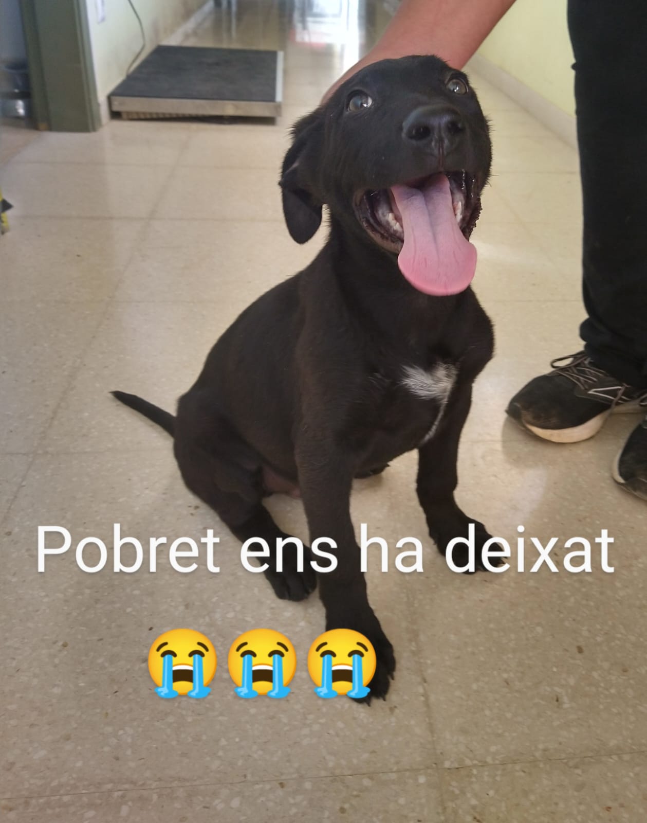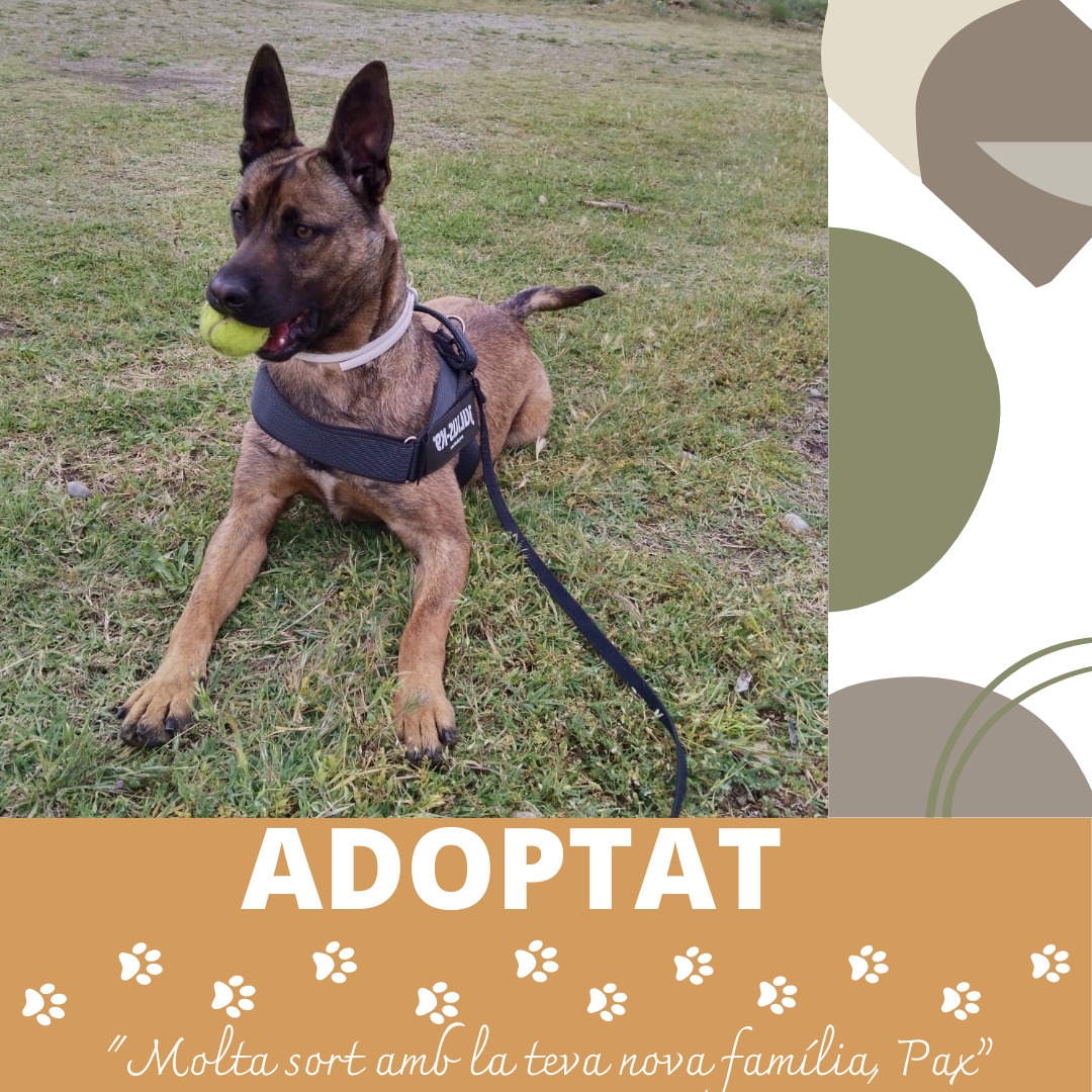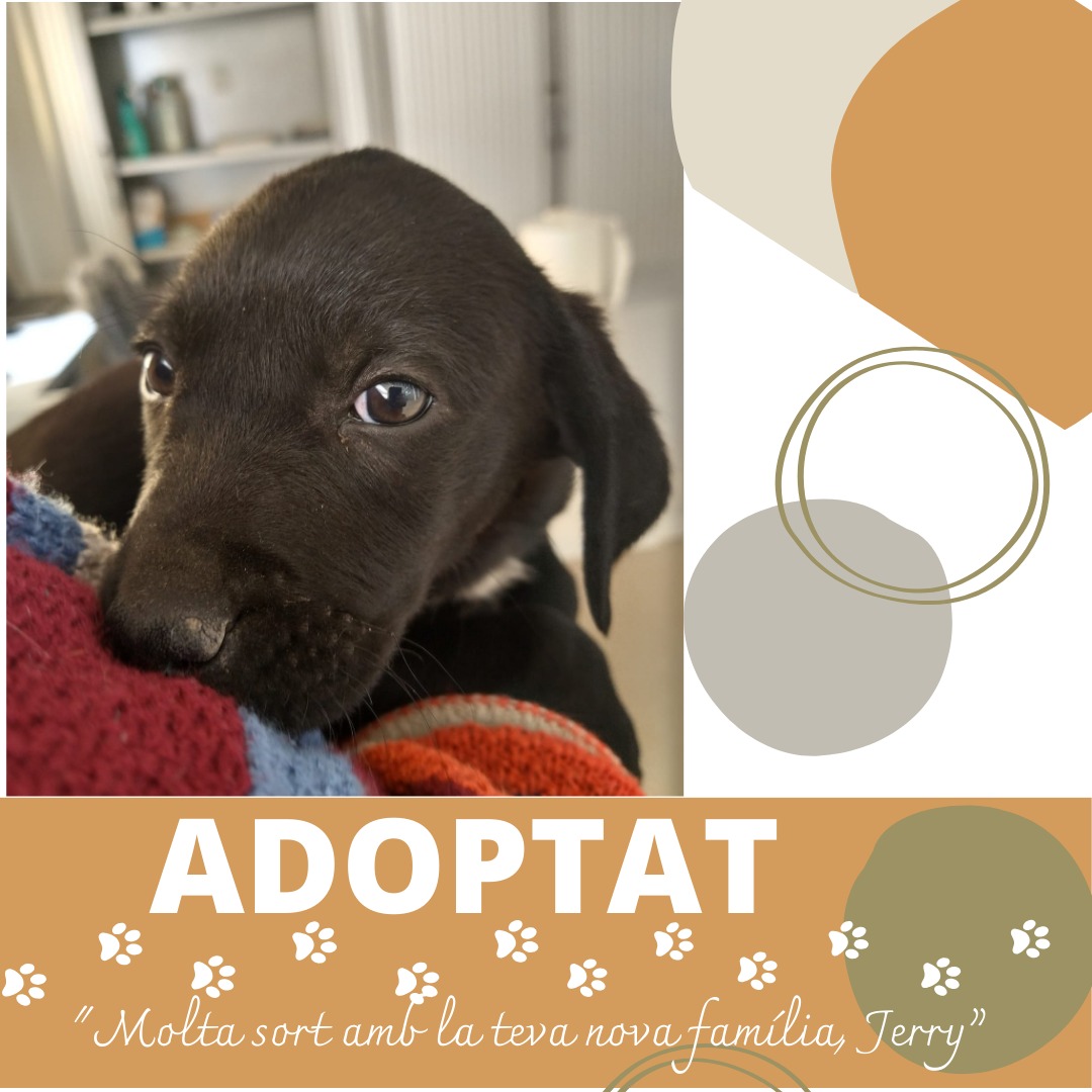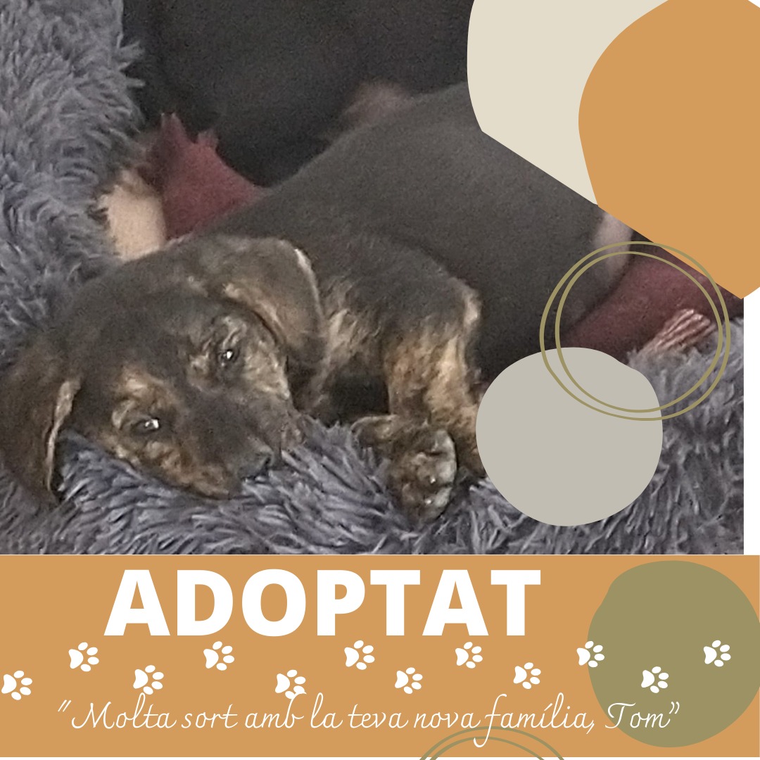 Aquest cadell i el seu germà van ser rescatats a Almenar. És molt bo, juganer i afectuós. Està en adopció. Si esteu interessats en conèixer-lo, contacteu amb nosaltres.