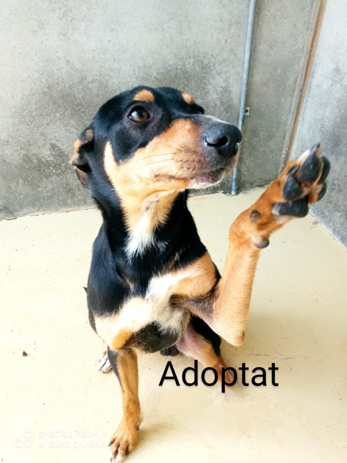 Aquesta gosseta va ser rescatada juntament amb la seva germana i un gosset a Artesa de Lleida. Es un cadellet, no crec que tingui ni l'any. Super afectuosa, juganera i molt sociable. Si algú la reconeix o vol coneixer-la, contacti amb nosaltres.