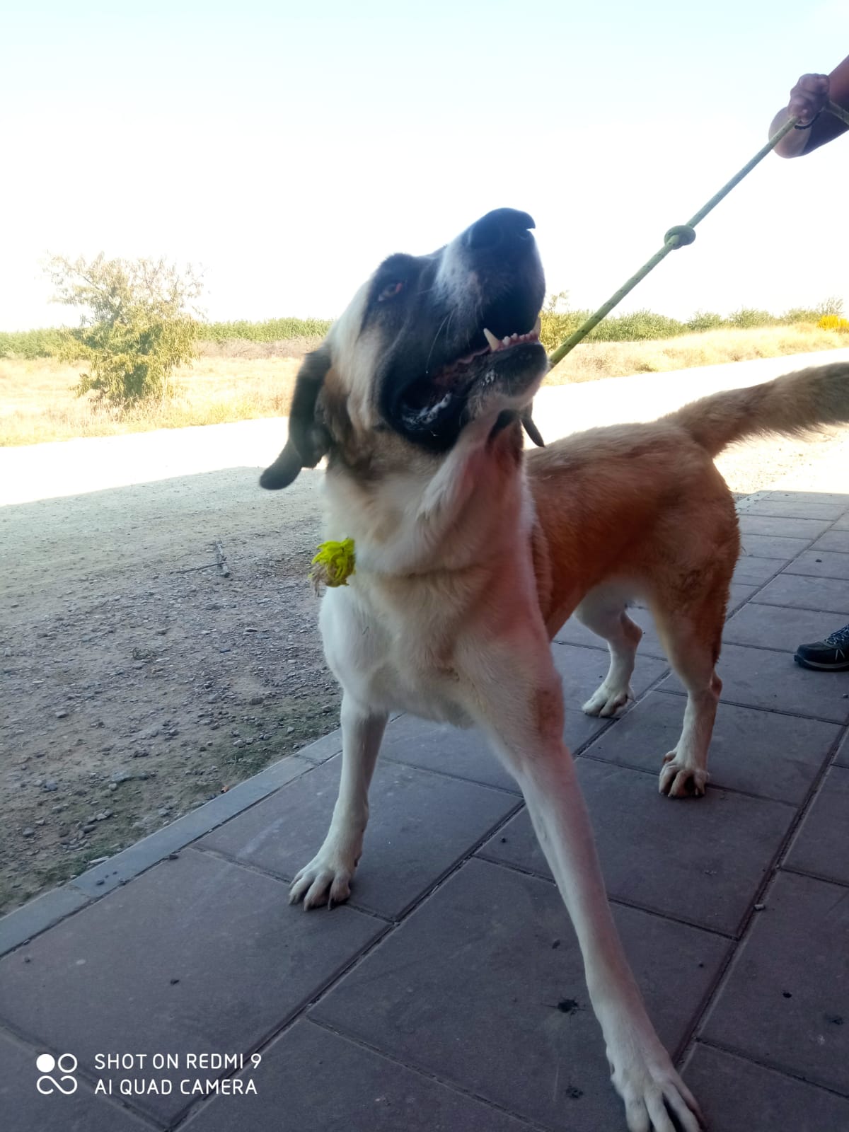 Aquest gos va ser rescatat a Almenar, amb dos gossos més. És molt bo, es porta molt bé i és afectuós. Està a ADOPCIÓ. Sí està interessat contacti amb nosaltres.