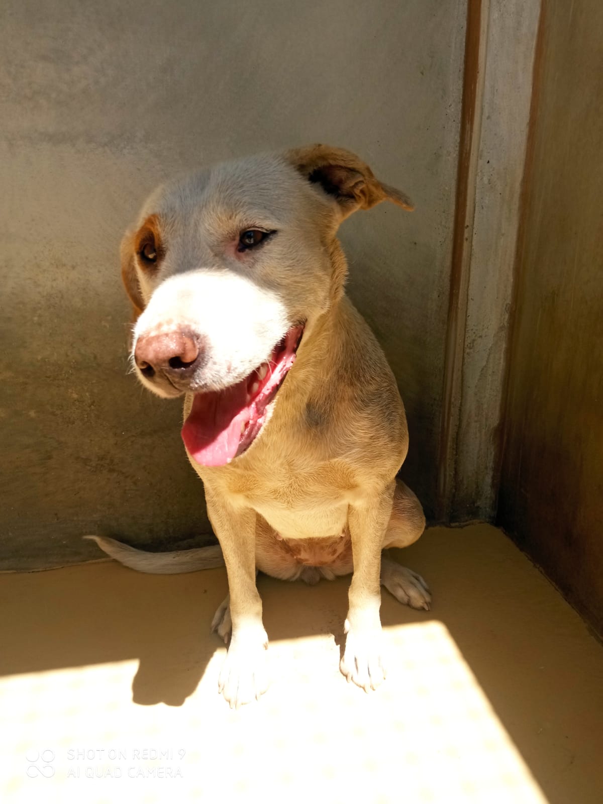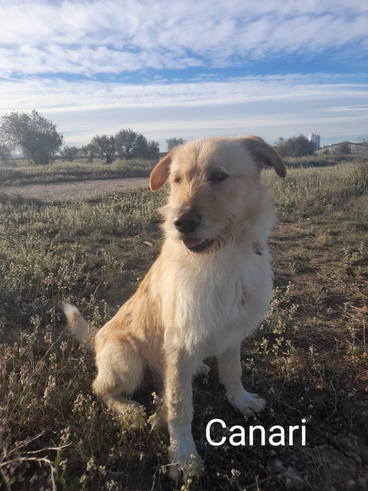 Aquest gos va ser rescatat a Alguaire. El van trobar juntament amb una gosseta, "la Dama", semblen germans. És molt bo, sociable i afectuós. Jovenet un any i mig aproximadament. Si algú els reconeix o vol conèixer-lo contacteu amb nosaltres.