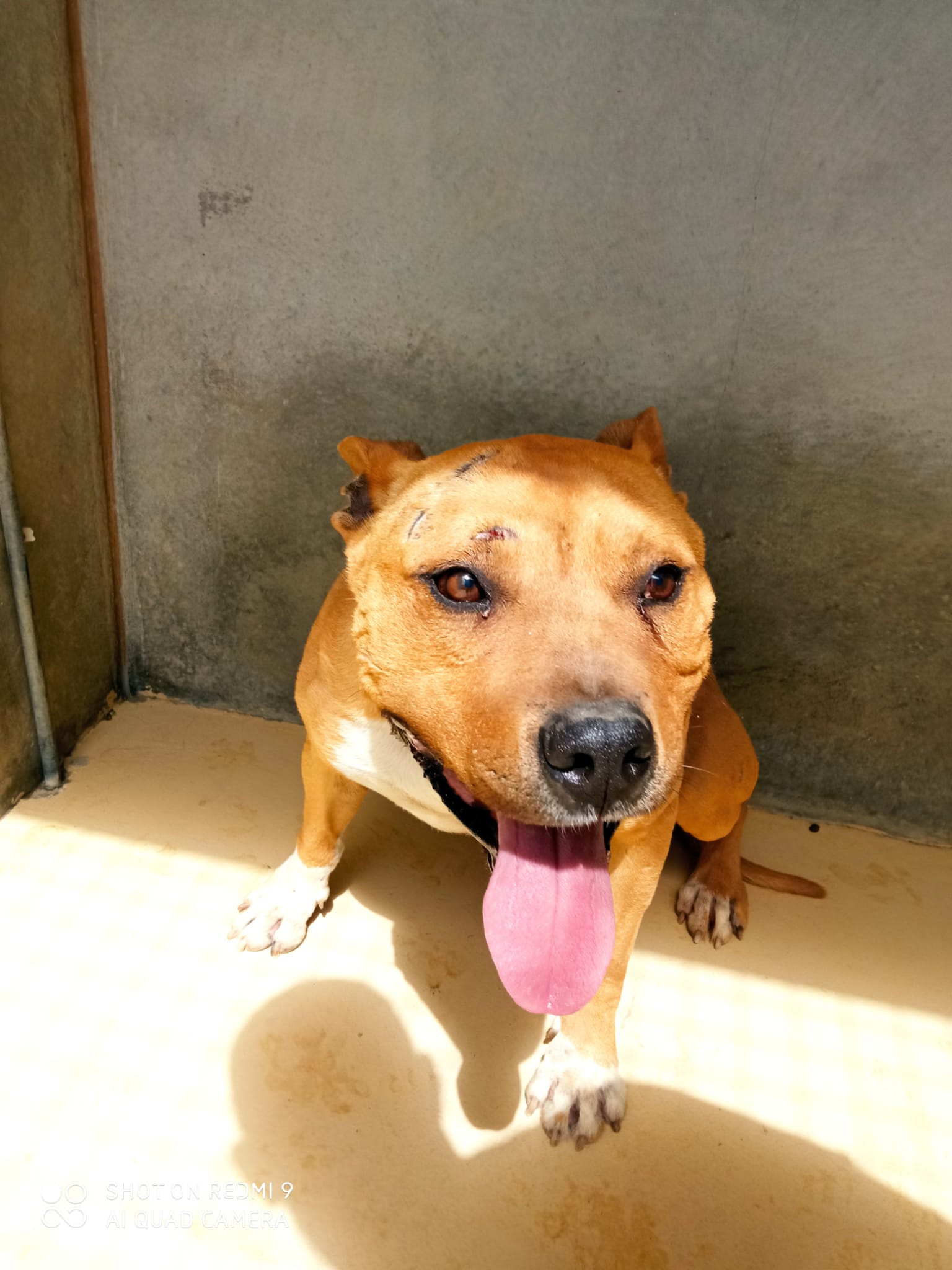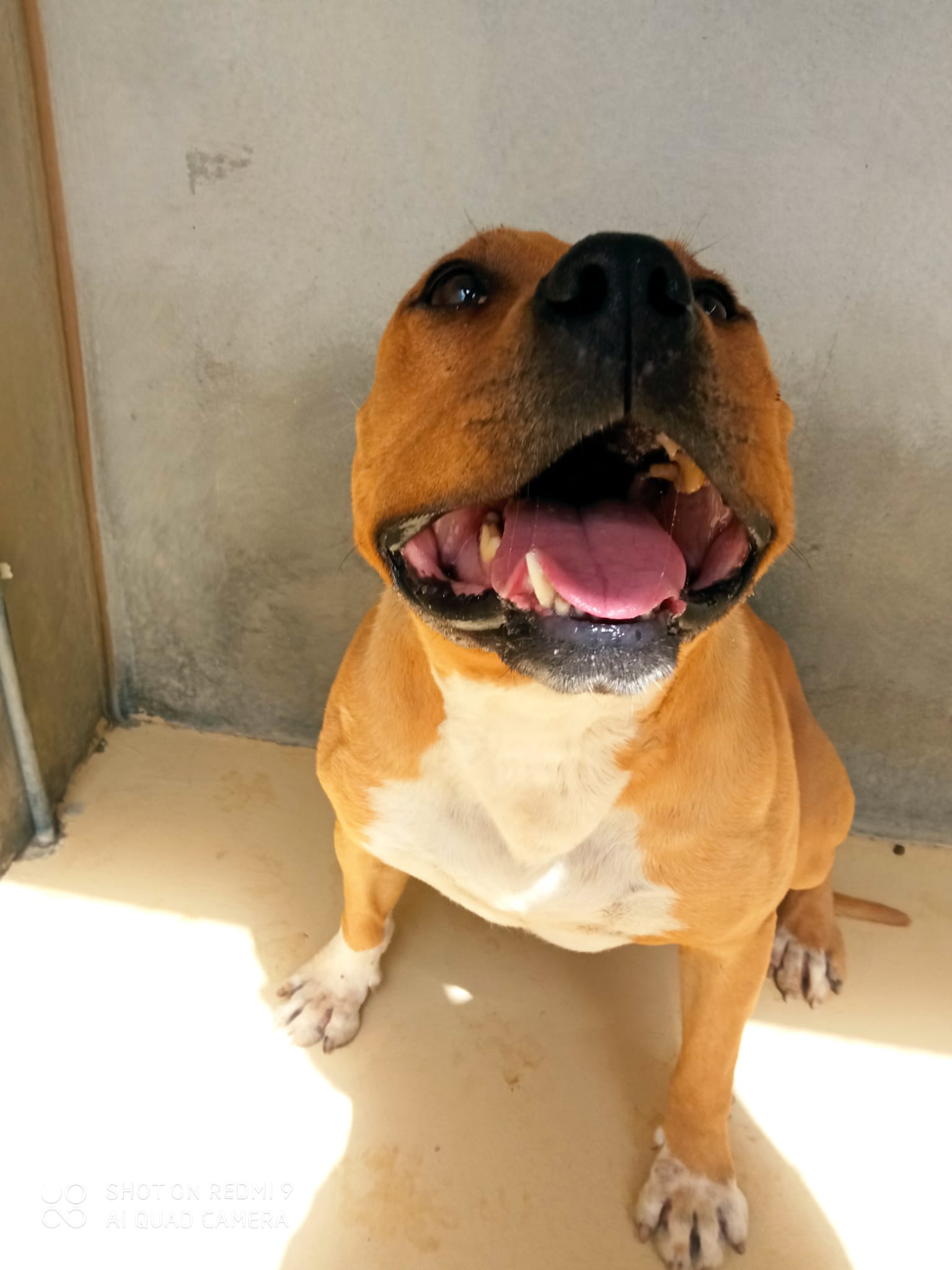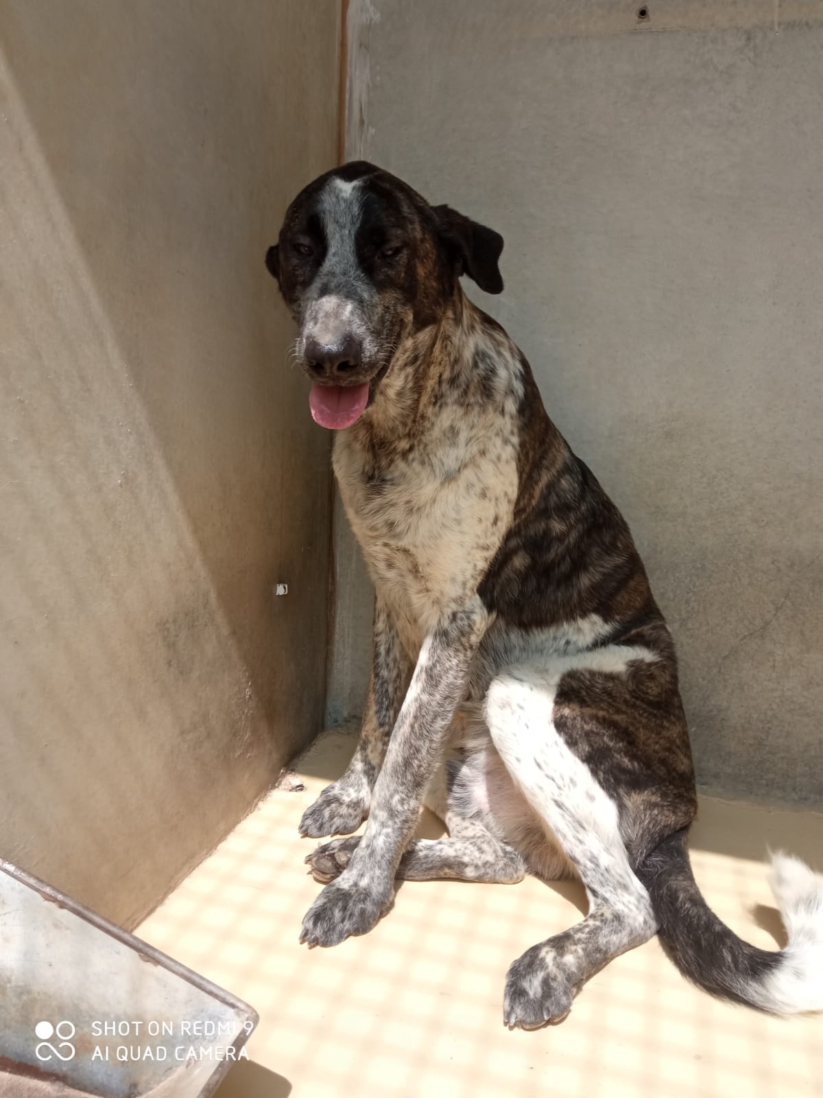 Aquest gos va ser rescatat a Alcarràs. És molt simpàtic i afectuós, li agraden molt les carícies i mimitos. Si algú el reconeix o el vol adoptar, contacteu amb nosaltres.