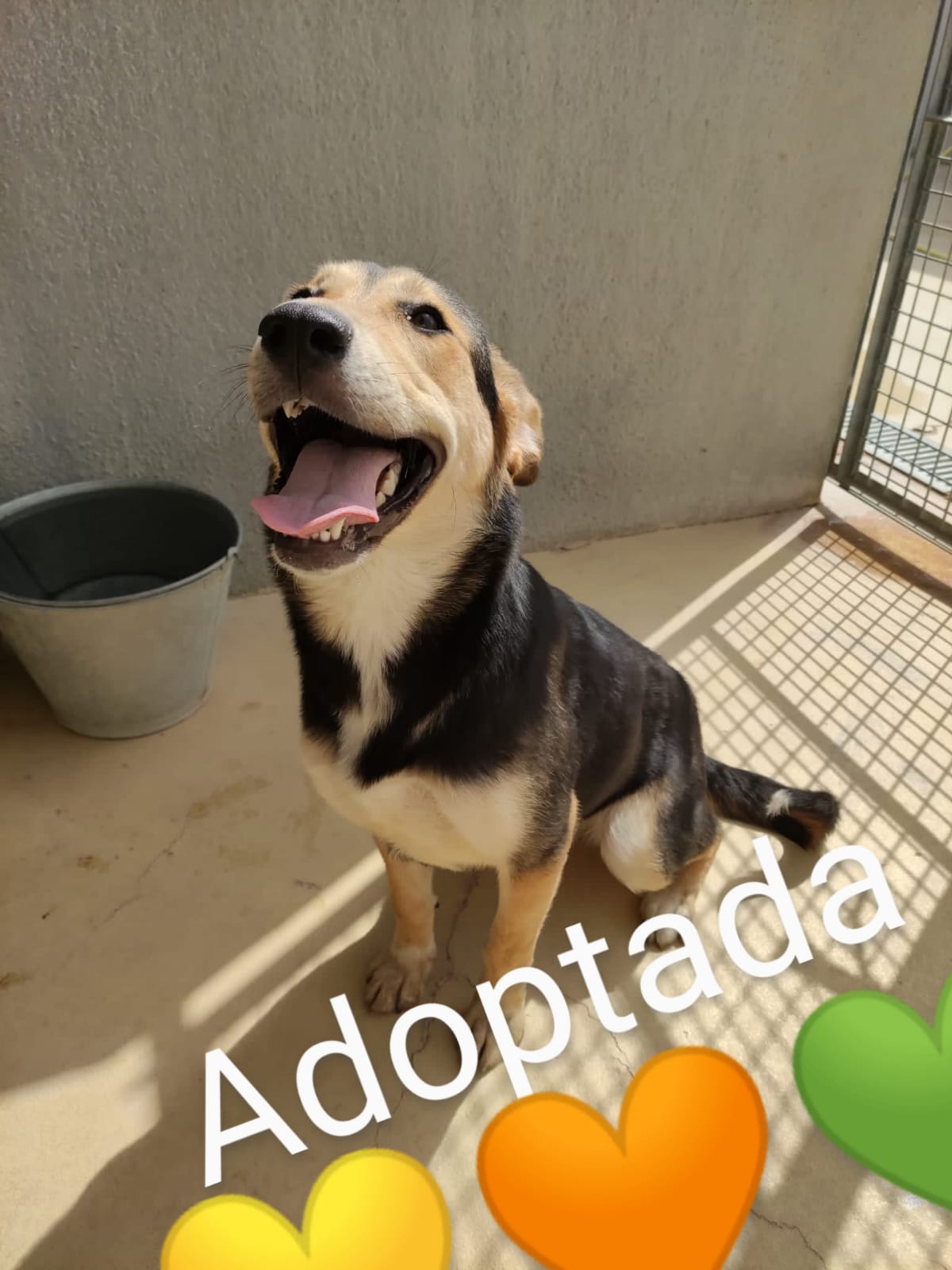 Aquesta gosseta va ser rescatada a Alcarràs. És molt joveneta, sis o set mesos. Bona, tranquil.la i molt afectuosa. Està en ADOPCIÓ. Si esteu interessats contacteu amb nosaltres.