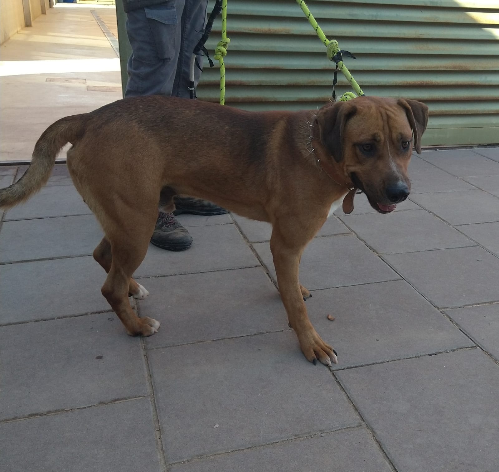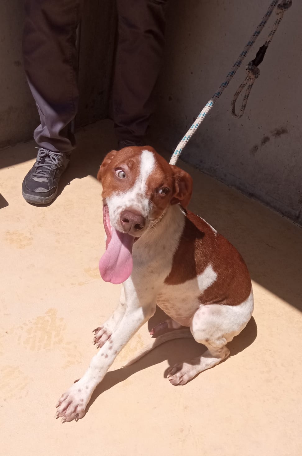 Aquest gos va ser rescatat a Alcoletge. Té uns tres anys aproximadament. És un gos fort, simpàtic i bó. Està en adopció. Sí esteu interessats contacteu amb nosaltres.