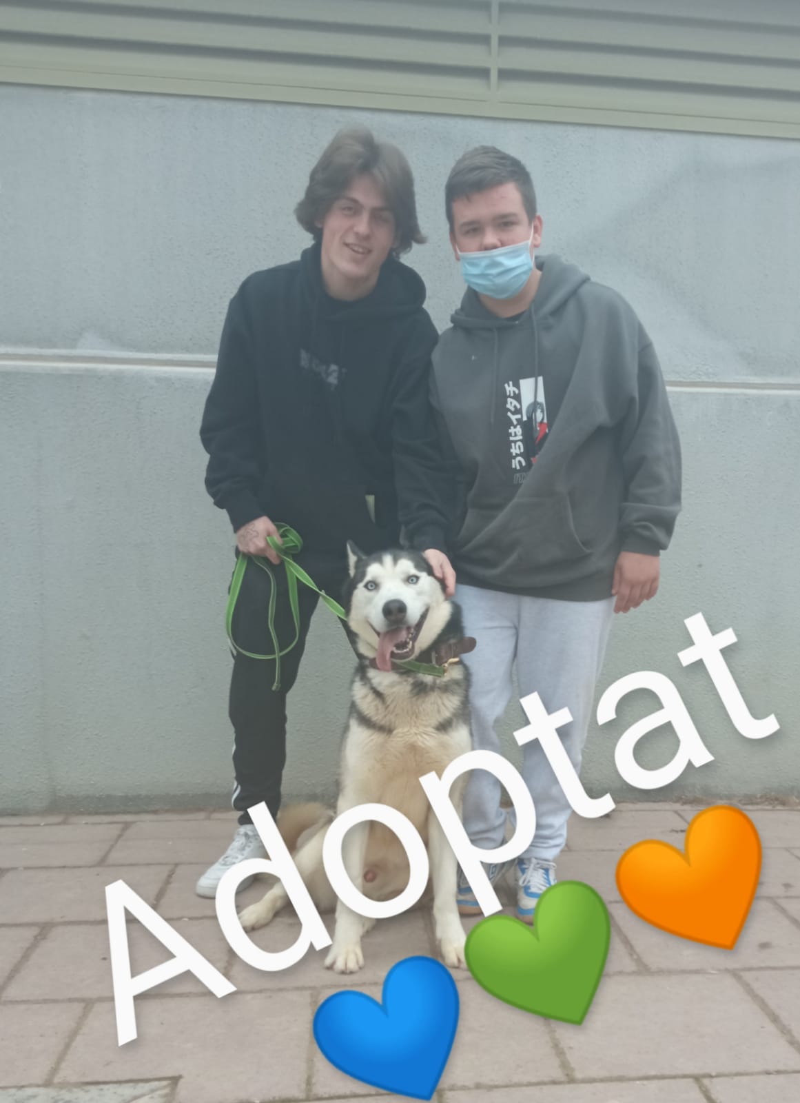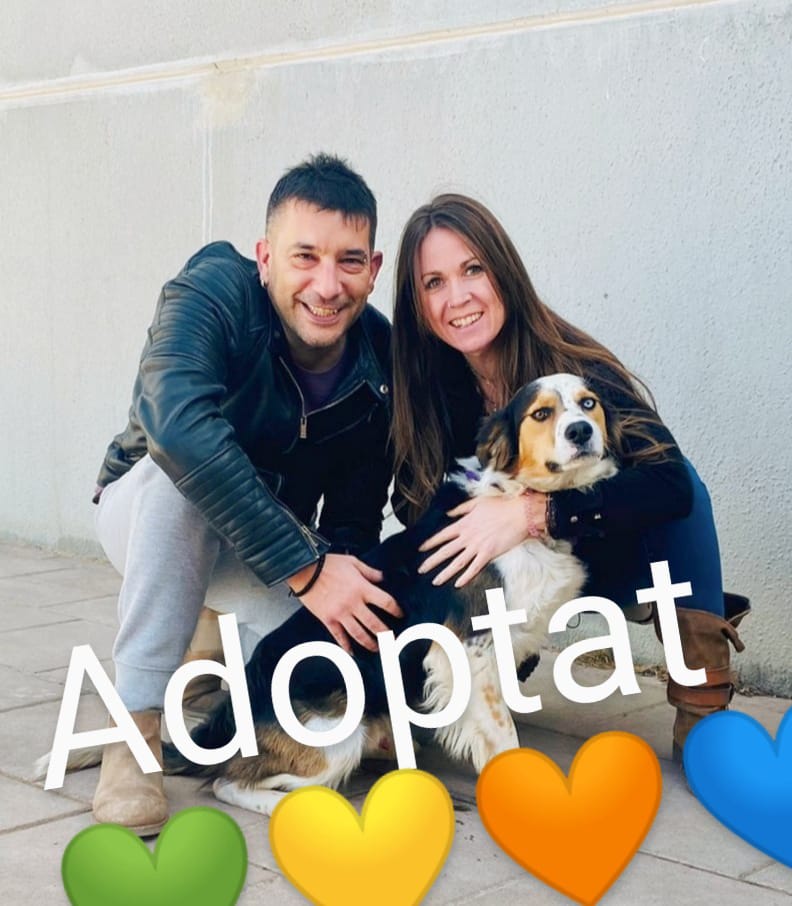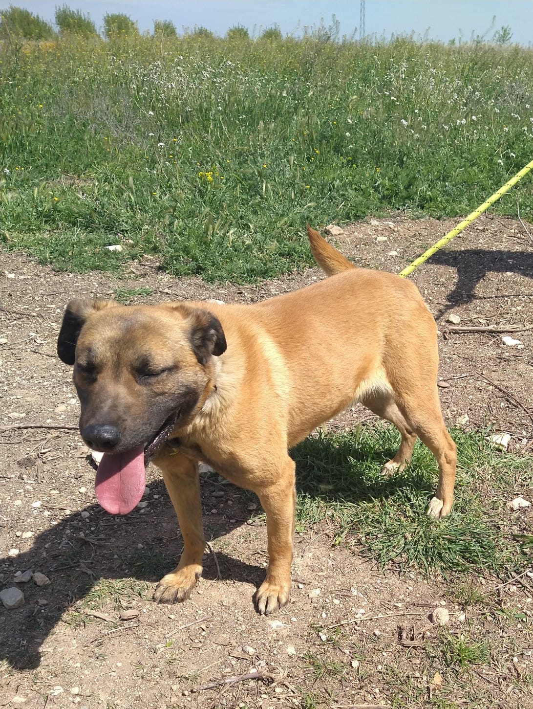 Aquest gos va ser rescatat a Puigverd de Lleida, juntament amb vuit gossos mes. És un gos tranquil, bo. Passeja amb corretja sense cap problema.