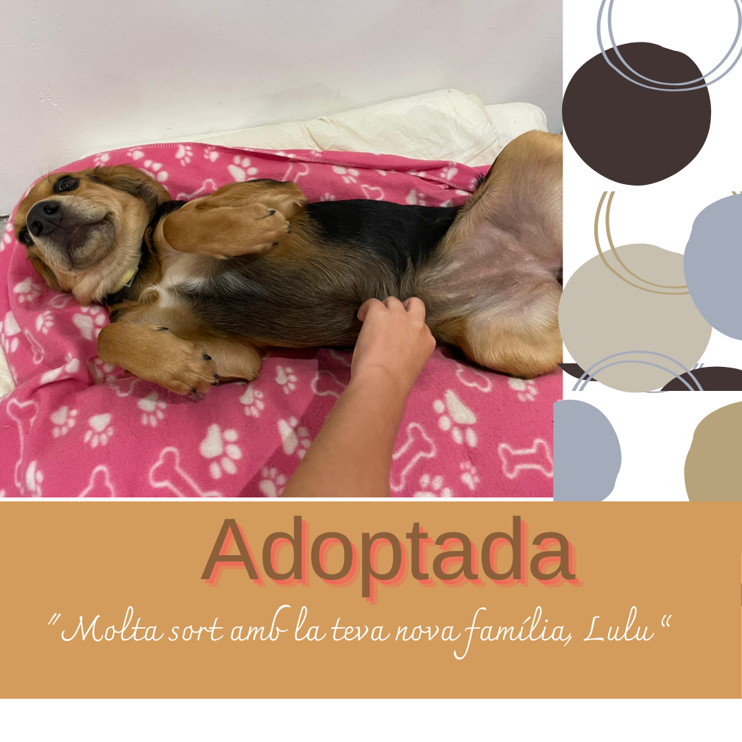Aquesta gosseta va ser rescatada a Torres de Segre. És molt bona, sociable i afectuosa. 2 anys aproximadament. Està en adopció. Si voleu conèixer-la, contacteu amb nosaltres.