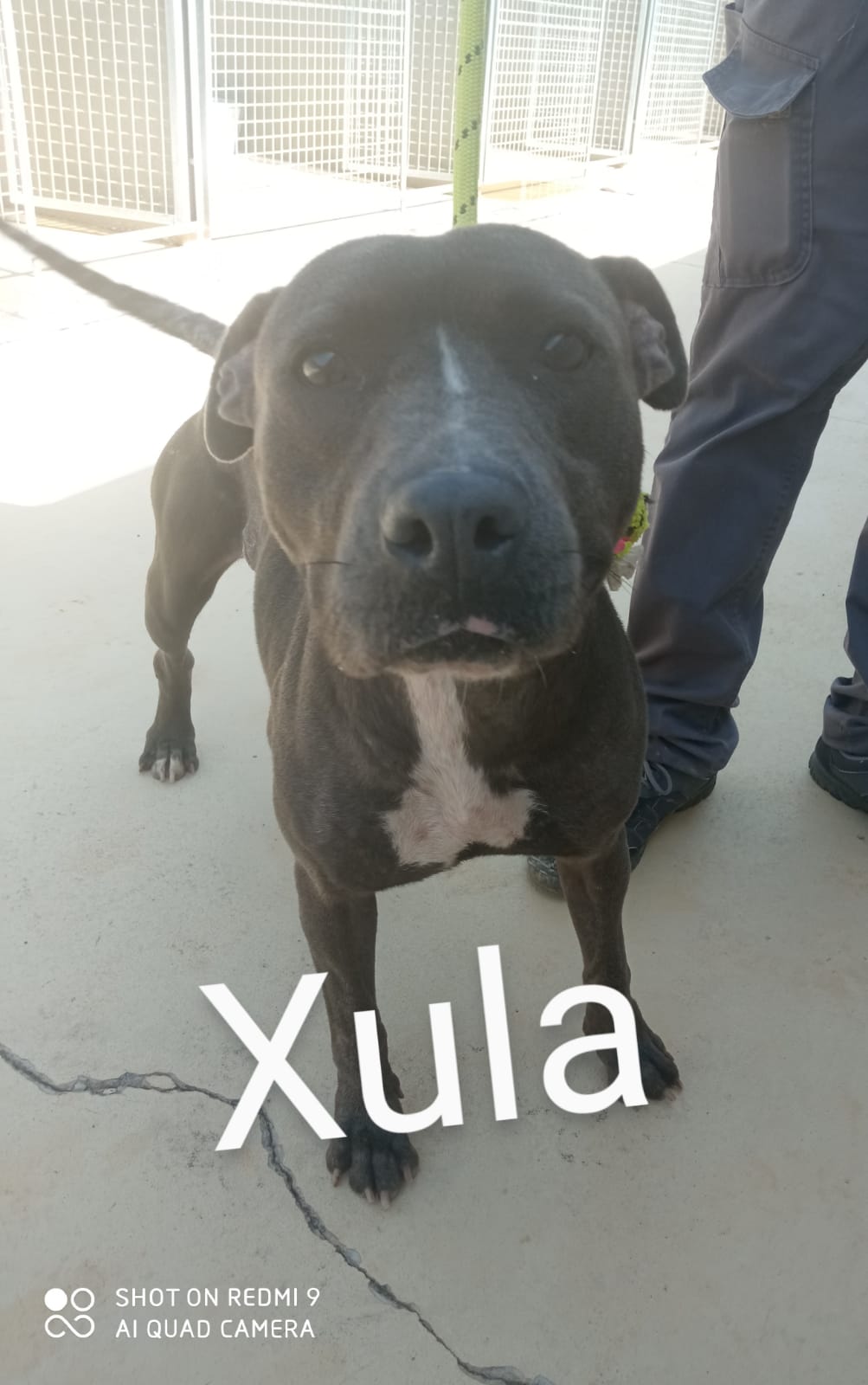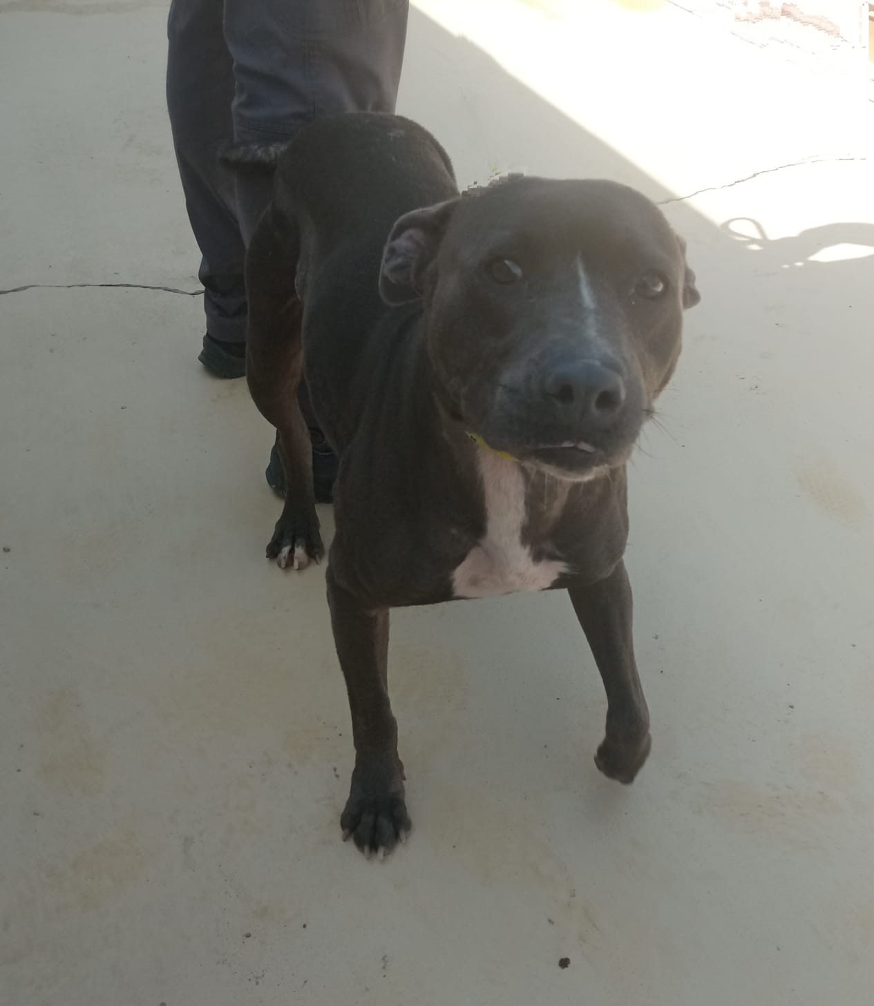 Aquest gos va ser rescatat a Montoliu de Lleida. És bo, simpàtic, juganer i afectuós. És jove un any aproximadament. Està en adopció. Si algú la reconeix o vol conèixer-la, contacteu amb nosaltres.