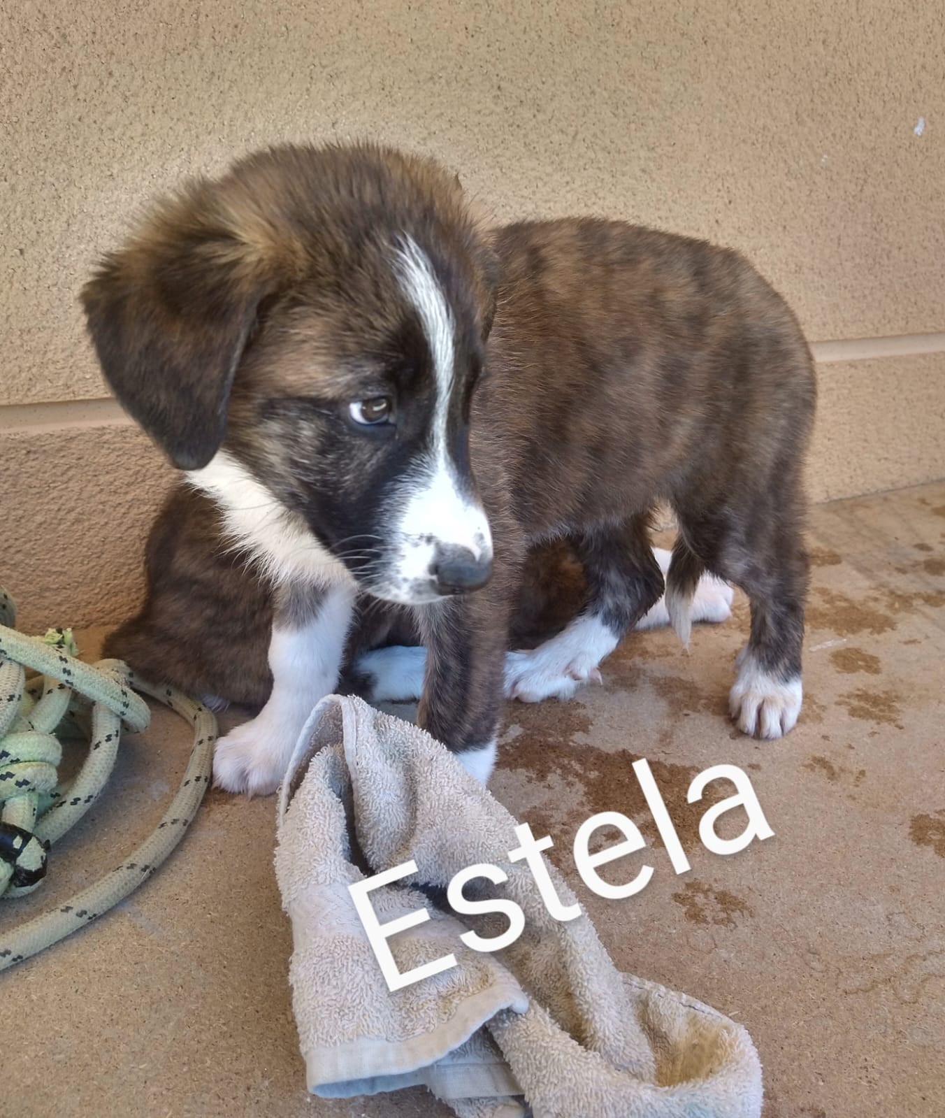 Aques gosset va ser rescatat a Alcarras. Es un cadellet, quatre o cinc mesos. Molt bo, juganer i afectuós. Si algú el reconeix o vol coneixer-lo, contacteu amb nosaltres.