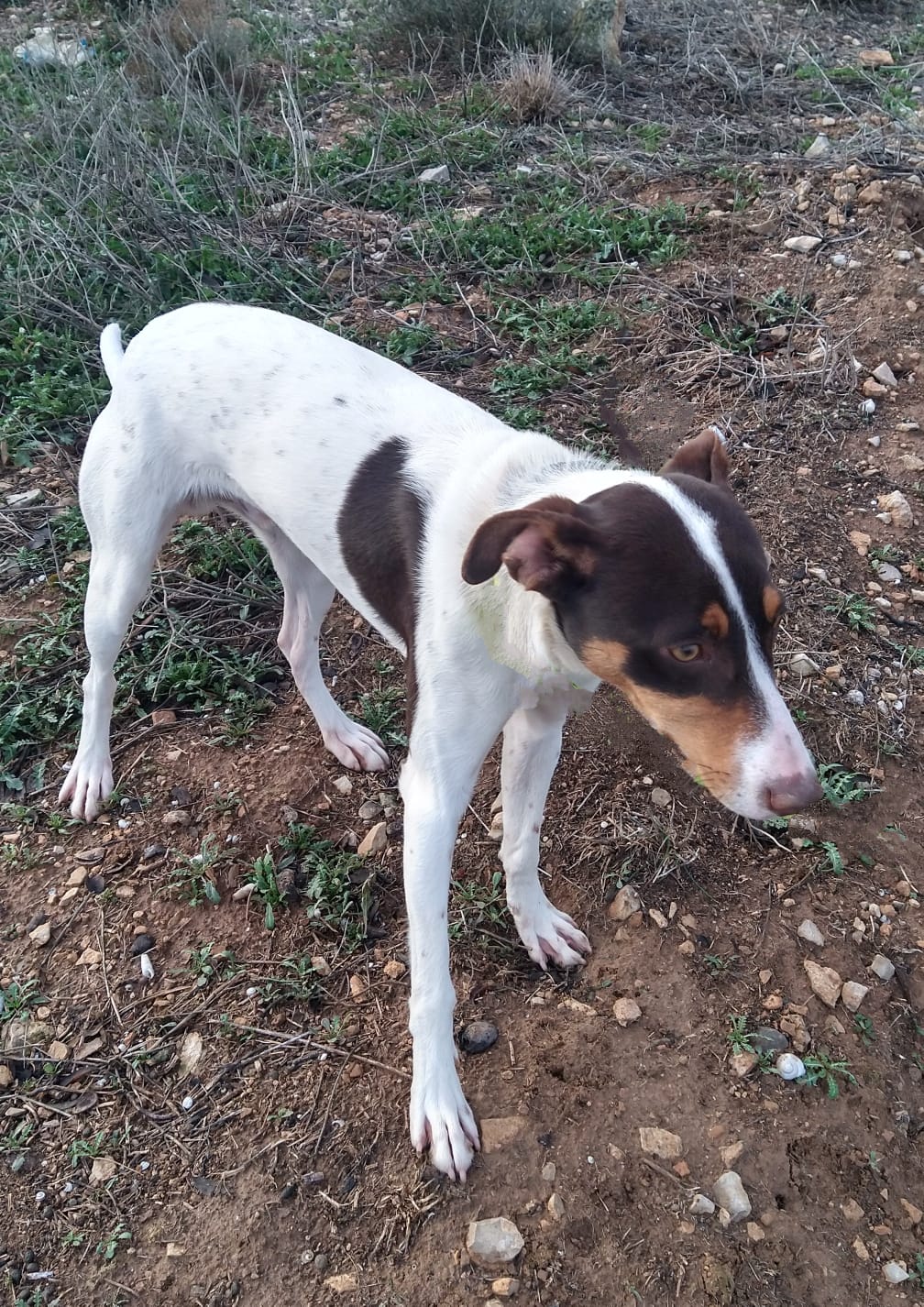 Aquest gos va ser rescatat a Alcoletge. Molt bo, afectuós i sociable. Uns dos anys aproximadament. Si algú el reconeix o el vol conèixer, contacteu amb nosaltres.
