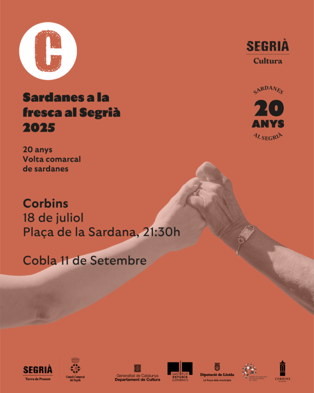 La plaça de la Sardana de Corbins acollirà divendres dia 18 de juliol a les 21.30 h la primera ballada de Sardanes a la fresca d’enguany. Organitzada per l’àrea de Cultura del Consell Comarcal del Segrià, aquesta serà la primera trobada de les colles en el 20è aniversari de la volta comarcal, després que el passat divendres se suspengués la ballada a Torrefarrera en decretar-se dia de dol oficial arreu de Catalunya per la mort d’un bomber a l’incendi de Paüls.
