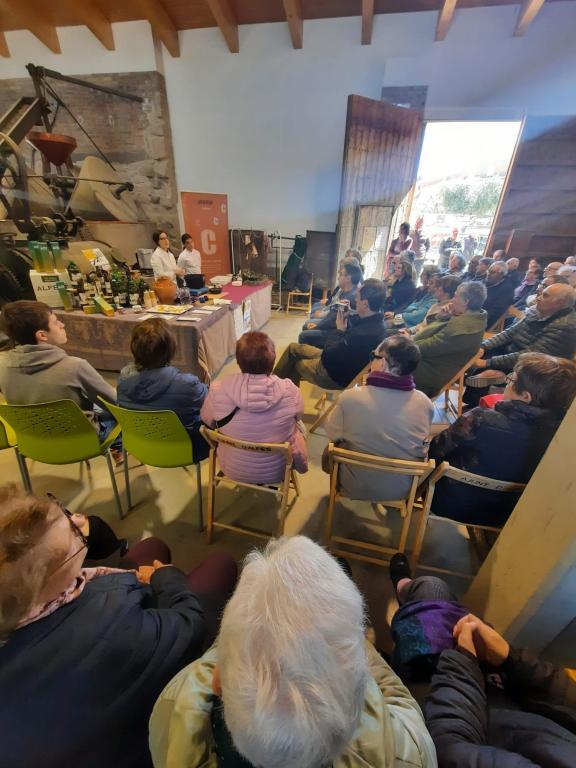 A Alfés es va celebrar dissabte, a més de la visita, una sessió de cuina en viu que permetia descobrir el receptari històric gastronòmic. Les olives i la tupina van centrar les propostes. La sessió corria a càrrec de Montse Freixa Arenillas, xef i prestigiosa somelier d’oli.