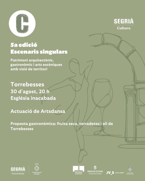 L'espectacle començarà a les 20.00 hores a l’Església inacabada (espai declarat Bé Cultural d’Interès Local) i en acabar els assistents gaudiran d’un tast gastronòmic amb fruits secs, torradetes i oli de Torrebesses.