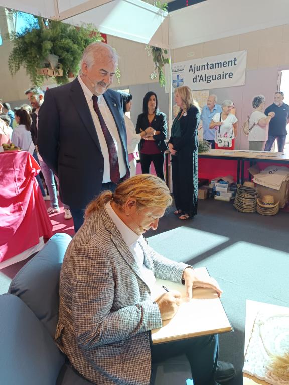 Masot ha signat al Llibre d’Honor i després de recórrer els stands i del seu discurs ha rebut com a obsequi una coca de recapte elaborada amb figues.