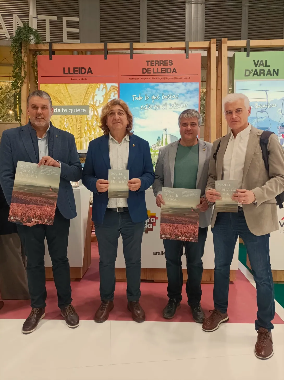 El president del Consell, David Masot; el vicepresident primer Sebastià Ribes; el cap de l'àrea de Promoció Econòmica i Turisme, Kleber Esteve; i el gerent Sergi Fo van ser presents a l'estand el primer dia de la fira per tal de donar a conèixer el fulletó d'enguany amb totes les activitats que es viuran als municipis del Segrià entorn de la floració previsiblement al mes de març.